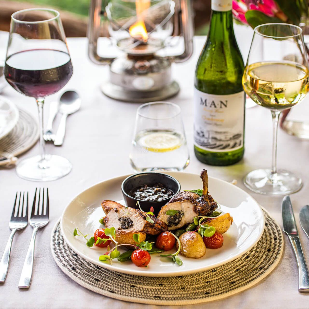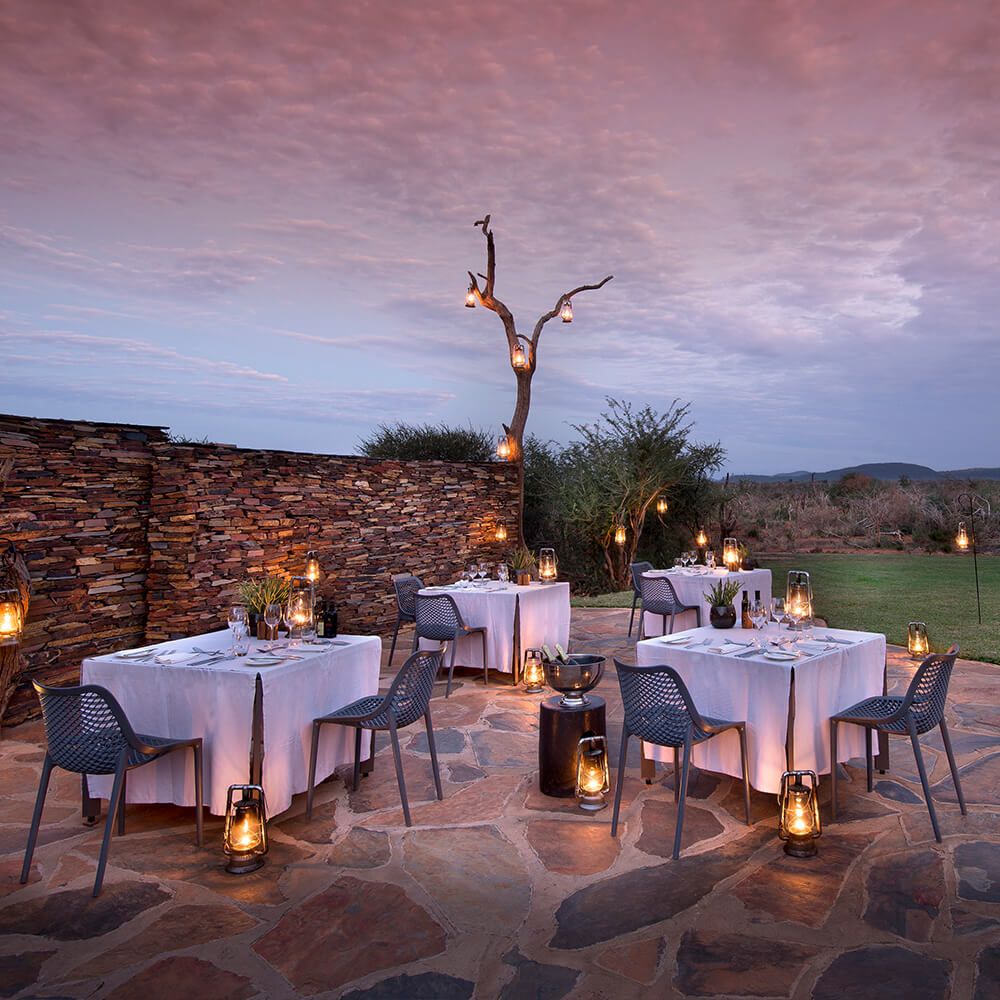 An ideal setting for celebrating special occasions. An intimate or romantic dining experience with a loved one, or even to treat yourself as a lone adventurer. Choose your ideal setting in front of a waterhole, out in the reserve or even in the comfort of your own suite in front of a fireplace to just take in the ambiance and enjoy the exquisite cuisine on offer.